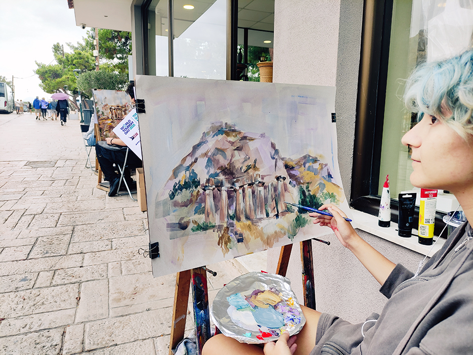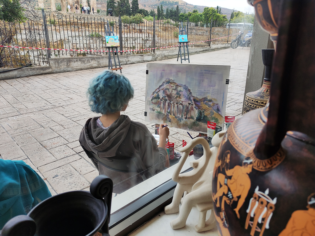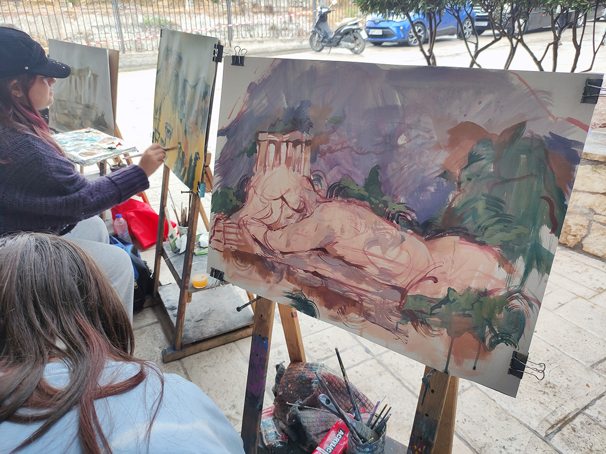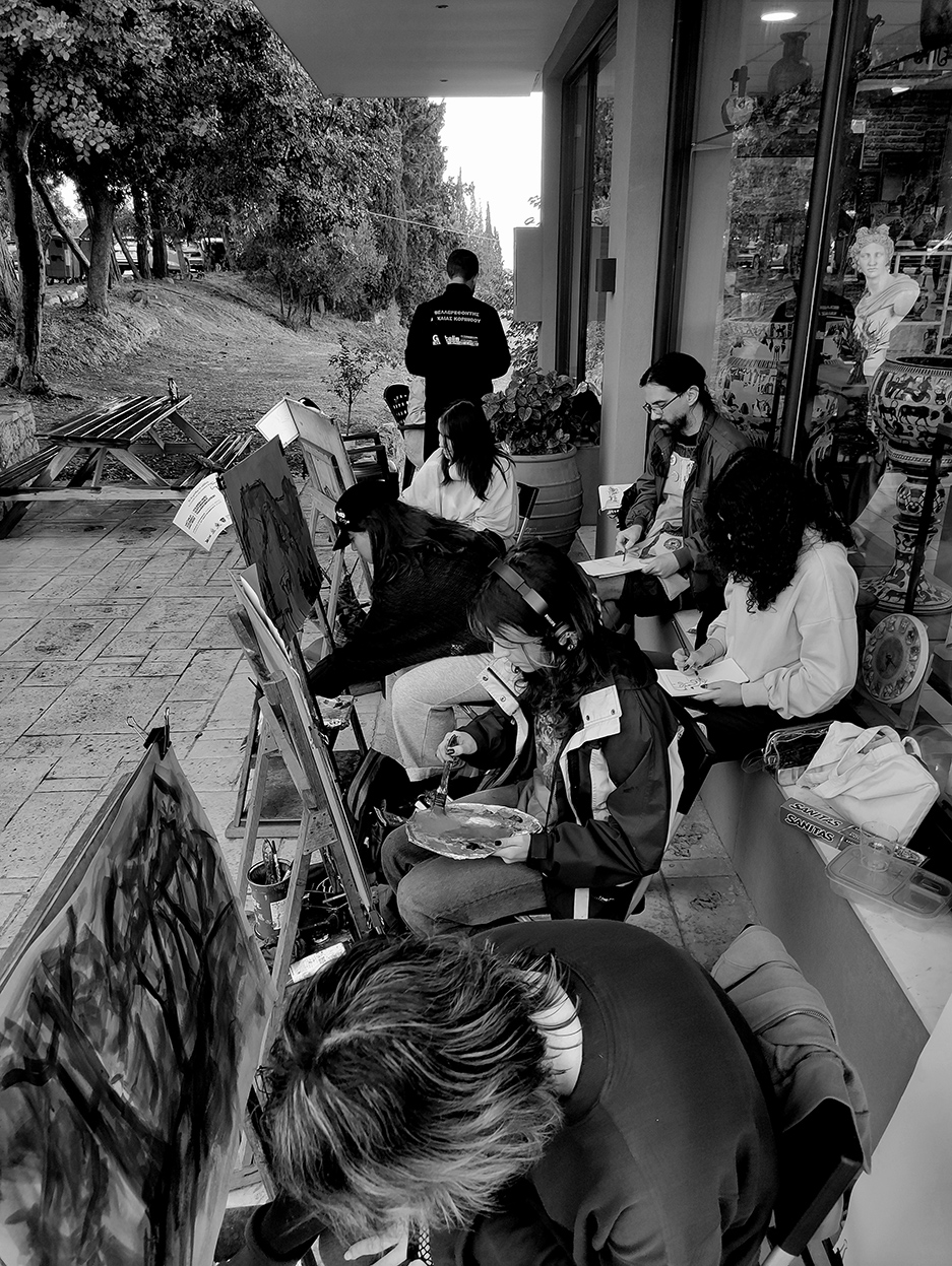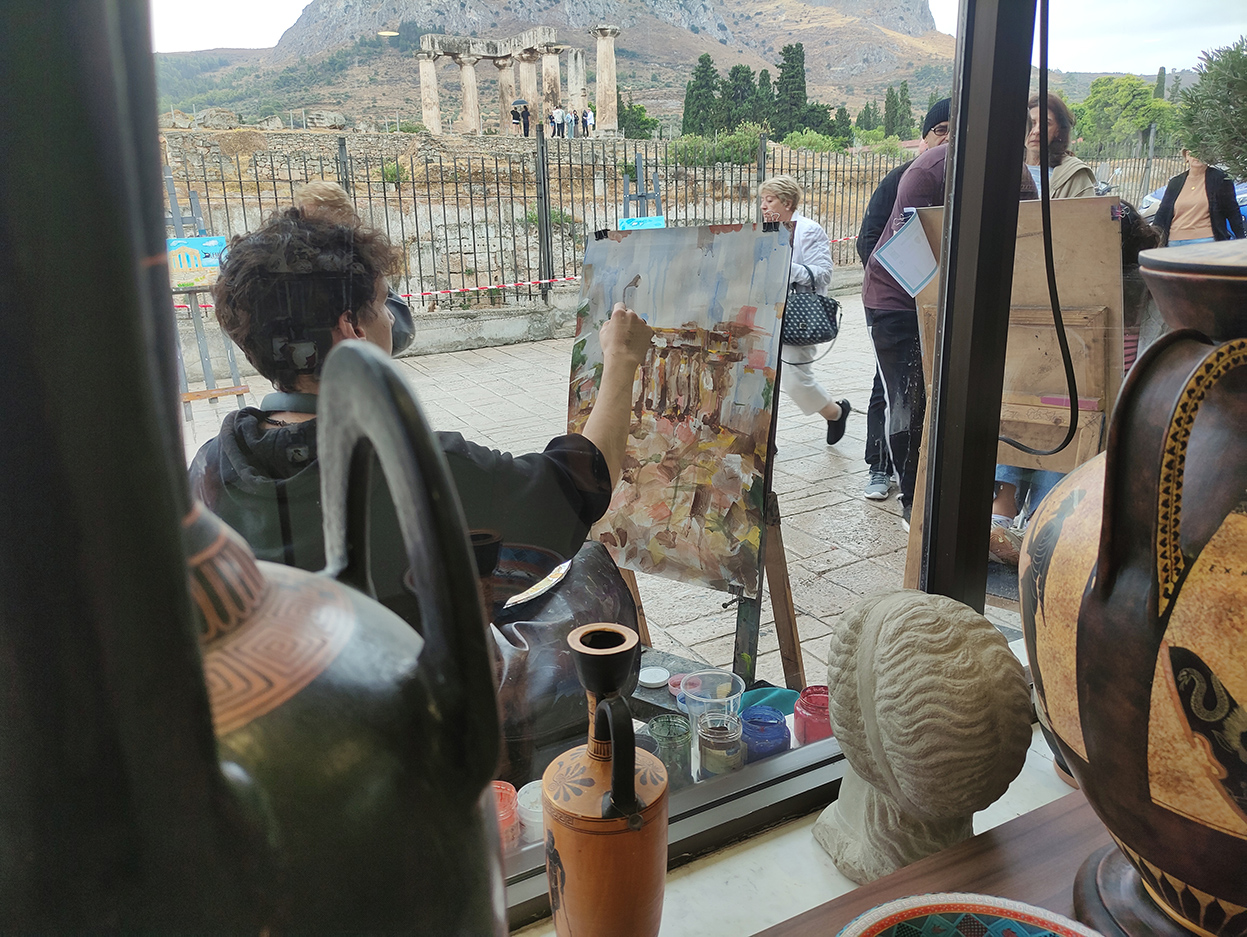 Την Κυριακή 28 Σεπτεμβρίου το πρωί μαθητές του τμήματος προετοιμασίας για την σχολή καλών τεχνών των GLOBAL ARTS STUDIOS συνοδεία των δασκάλων τους Ηλία Κασσελά, Σταμάτη Κανελλόπουλου και Σωκράτη Λαμπρόπουλου συμμετείχαν στον εορτασμό για την παγκόσμια μέρα τουρισμού που διοργάνωσε ο Σύλλογος Επαγγελματιών Αρχαίας Κορίνθου (ΣΕΑΚ) ύστερα από πρόσκληση του προέδρου Γιώργου Παπαμιχαήλ. Οι σπουδαστές λόγο των καιρικών συνθηκών έστησαν τα καβαλέτα τους απέναντι από το ναό του Απόλλωνα της Αρχαίας Κορίνθου περιμετρικά του καταστήματος του προέδρου του ΣΕΑΚ ο οποίος με την ομάδα του έκανε τα αδύνατα δυνατά για να φιλοξενήσει το εγχείρημα που ήταν διαφορετικά σχεδιασμένο. Τα έργα που φιλοτέχνησαν τα παιδιά μέσα σε δύο ώρες ήταν πολύ υψηλού επιπέδου και προσέλκυσαν πλήθος κόσμου που περιηγούνταν πέριξ του ναού. Την δράση επισκέφτηκε ο Δήμαρχος Κορινθίων ο οποίος συνεχάρη τα παιδιά τους δασκάλους και τον διευθυντή της σχολής Σωκράτη Λαμπρόπουλο και μίλησε εκτενώς με τους διοργανωτές. Επίσης η αντιδήμαρχος τουρισμού Δήμητρα Τσουλουχά βρισκόταν καθ’ όλη την διάρκεια της εκδήλωσης στο χώρο για να συνδράμει σε ότι χρειαστεί. Τα μέλη του ΔΣ του συλλόγου παραβρίσκονταν επίσης καθώς και φίλοι πολλοί. Ο διευθυντής της σχολής GLOBAL ARTS STUDIOS ευχαρίστησε θερμά το πρόεδρο του ΣΕΑΚ Γιώργο Παπαμιχαήλ για την τιμητική πρόσκληση και την φιλοξενία. Την εκδήλωση υποστήριξε ο Δήμος Κορινθίων, ο Πολιτιστικός σύλλογος «Βελλερεφών» και ο σύλλογος γονέων και κηδεμόνων Αρχαίας Κορίνθου.
